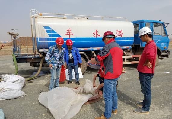 驗收小組現(xiàn)場檢測山皮石墊層固體體積率