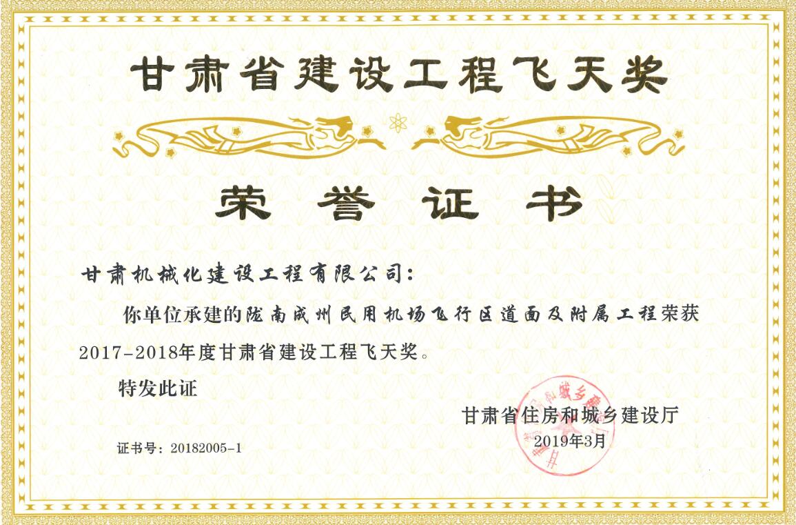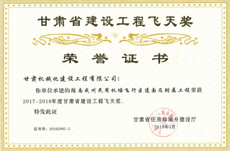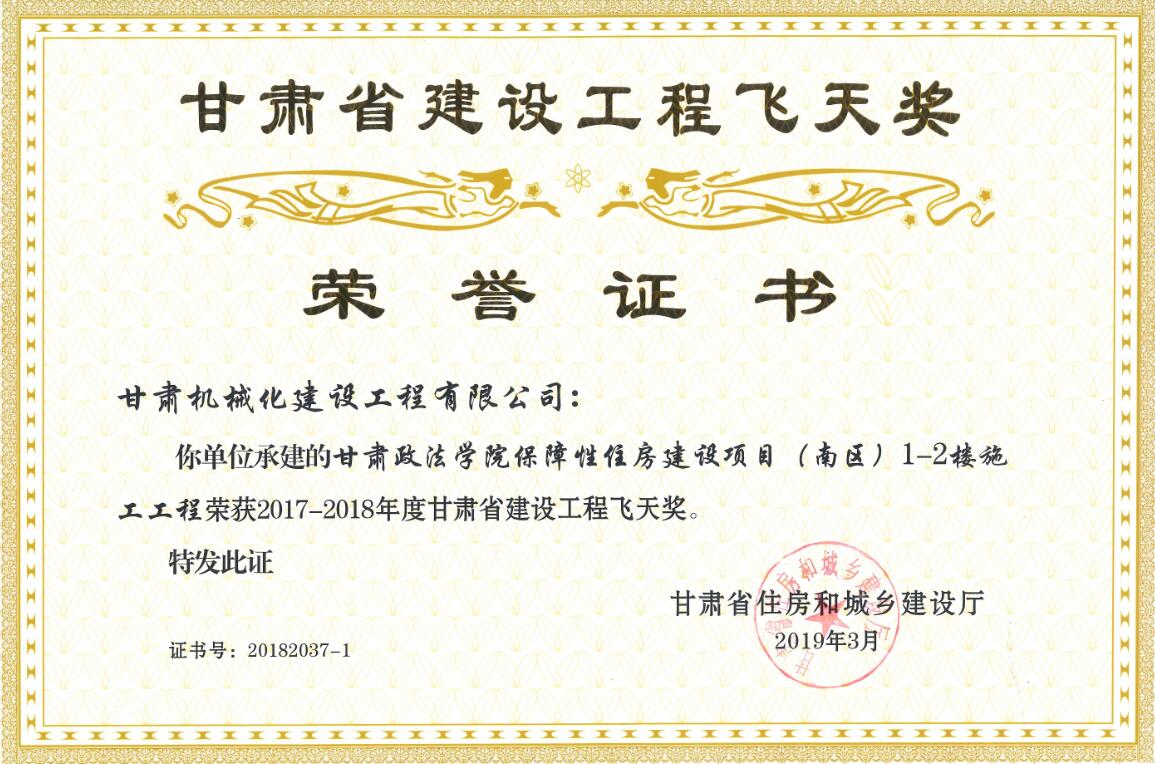 甘肅省住房和城鄉(xiāng)建設廳關于2017-2018年度(第二批)甘肅省建設工程飛天金獎和飛天獎入選名單公示已經(jīng)結(jié)束,我司共有兩個項目榮獲甘肅省建設工程飛天獎。
