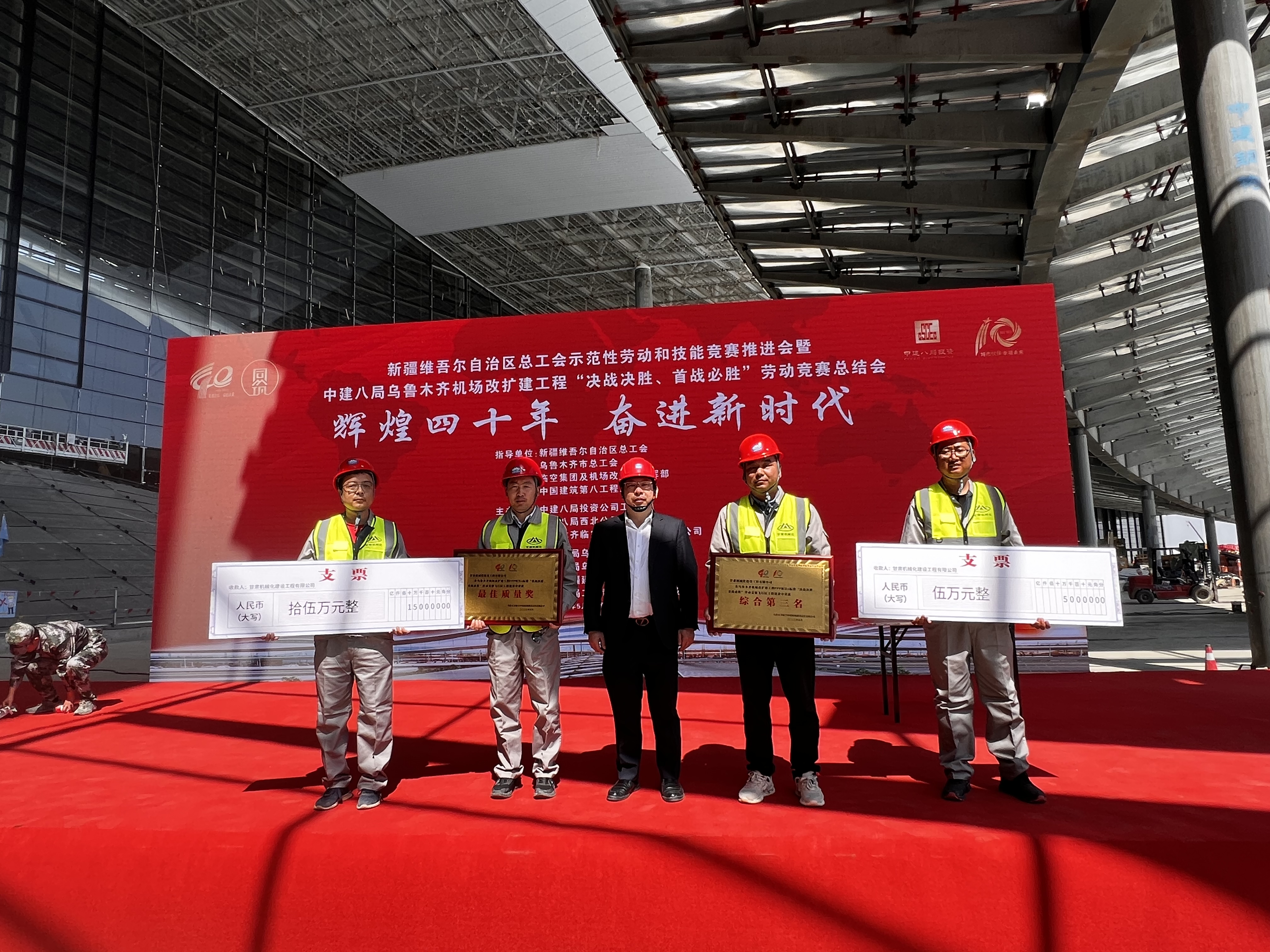 5月10日,新疆維吾爾自治區(qū)總工會(huì)示范性勞動(dòng)和技能競(jìng)賽推進(jìn)會(huì)暨烏魯木齊機(jī)場(chǎng)改擴(kuò)建工程“決戰(zhàn)決勝、首戰(zhàn)必勝”勞動(dòng)競(jìng)賽總結(jié)會(huì)上,我司烏魯木齊機(jī)場(chǎng)改擴(kuò)建工程項(xiàng)目部榮獲飛行區(qū)工程建設(shè)綜合第三名及最佳質(zhì)量獎(jiǎng);同時(shí)張振華同志榮獲“優(yōu)秀共產(chǎn)黨員”榮譽(yù)稱號(hào),鄧小剛同志與嚴(yán)文明同志榮獲“優(yōu)秀個(gè)人”稱號(hào)!