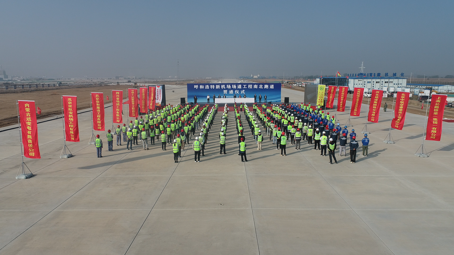9月26日,呼和浩特新機(jī)場(chǎng)場(chǎng)道工程南北跑道貫通儀式在呼和浩特新機(jī)場(chǎng)施工現(xiàn)場(chǎng)舉行。公司黨委書(shū)記參加貫通儀式并代表飛行區(qū)場(chǎng)道施工單位致詞。