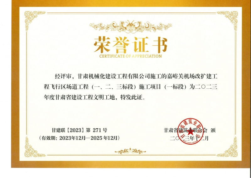 2023年度甘肅省建設工程文明工地 嘉峪關機場改擴建工飛行區(qū)場道(一、二、三標段) 施工項目 (一標段)